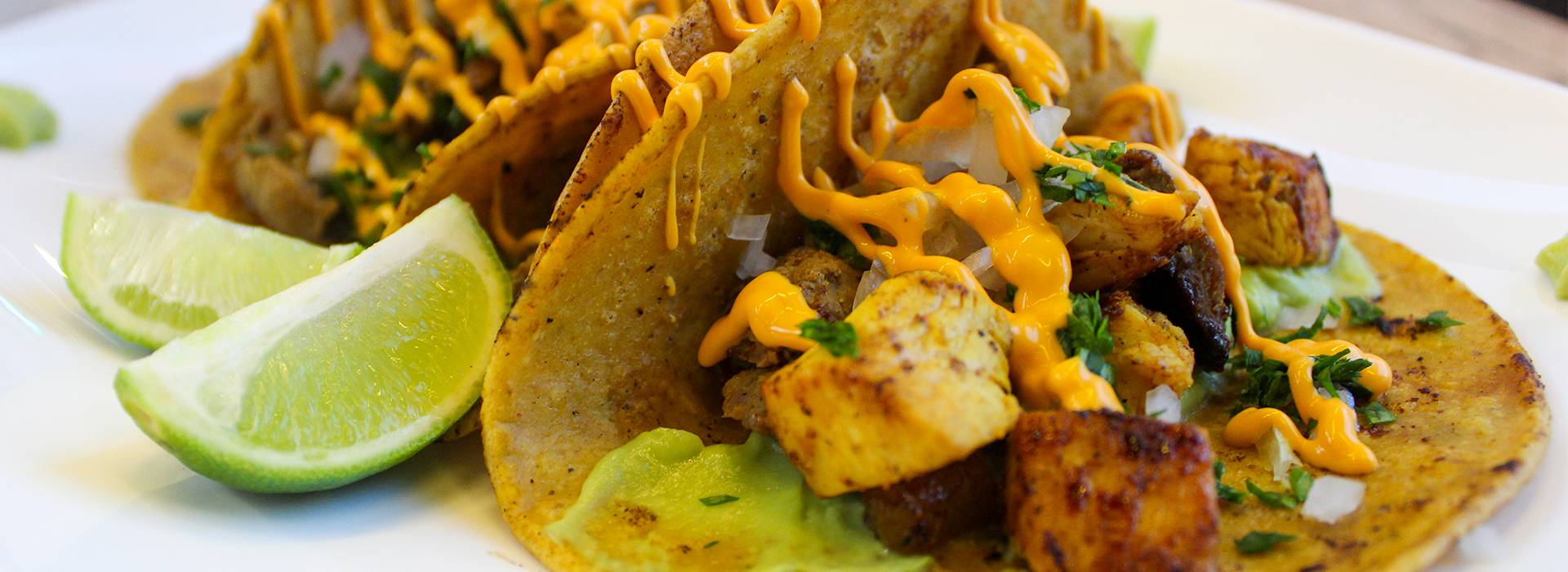 Carne de res picada, pechuga de pollo y chorizo picados, queso cheddar, lechuga, tomate, huevo, pan hecho en casa y porción de papas.